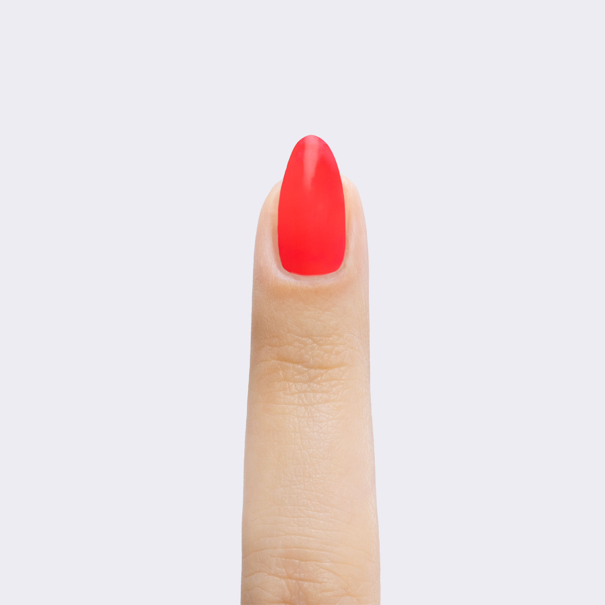 Neon pink-red. Medium. Bright. Opaque. Warm undertone.